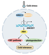 REDUCED CHLOROPLAST COVERAGE 2(SlREC2)是一个四肽重复蛋白。该团队研究发现:温光交叉信号关键因子SlFHY3在缓解番茄低温光抑制中发挥了关键作用,编码四肽重复蛋白的SlRECs家族基因是其潜在的下游靶基因;SlREC2通过诱导番茄体内脱落酸(ABA)含量、CBF途径相关基因的表达及光保护途径,进而正调控番茄的耐低温性;在番茄玉米黄质生物合成中催化β-紫罗酮羟基化形成β,β-叶黄素的关键蛋白酶β-RING CAROTENE HYDROXYLASE 1b(SlBCH1b)可以与SlREC2互作。遗传学试验研究表明,SlREC2与SlBCH1b通过共同促进番茄体内ABA积累、CBF途径相关基因的表达以及光保护途径,协同增强番茄响应低温弱光胁迫的能力。研究成果建立了一条四肽重复蛋白缓解番茄低温光抑制的信号转导途径,初步展现了以SlREC2-SlBCH1b为中心的信号模块在番茄抗逆遗传改良中的潜在应用价值。研究得到了国家优秀青年科学基金、国家重点研发计划、辽宁省优秀青年科学基金等项目的资助。